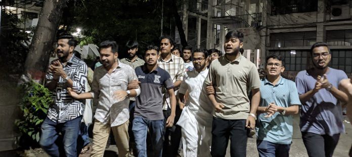 বৃহস্পতিবার (২ অক্টোবর) রাতে বিক্ষোভ মিছিলটি ক্যাম্পাসের বিভিন্ন স্থান প্রদক্ষিণ করে বিশ্ববিদ্যালয়ের রফিক ভবনের সামনে একত্রিত হয়।