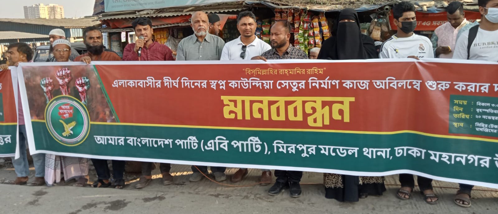 কাউন্দিয়া ব্রিজের কাজ শুরুর দাবিতে এবি পার্টির মানববন্ধন